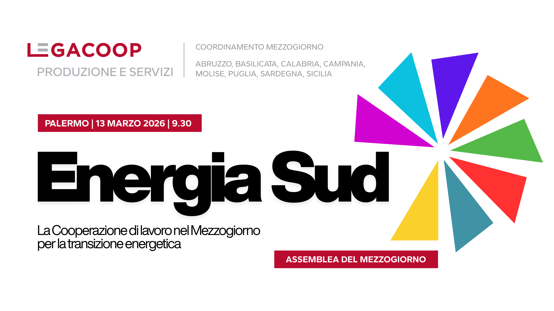 Venerdì 13 marzo 2026, dalle ore 9,30 alle ore 13.30, si terrà a Palermo, presso il Marina Convention Center al Molo Trapezoidale, l’Assemblea delle Cooperative di Produzione e Servizi del Mezzogiorno dal titolo “ENERGIA SUD – La Cooperazione di lavoro nel Mezzogiorno per la transizione energetica”.