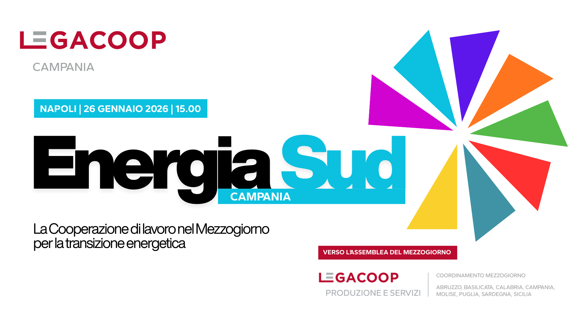 Lunedì 26 gennaio 2026, a partire dalle ore 15.00, si terrà a Napoli, presso la sede di Legacoop Campania, la prima tappa del percorso territoriale verso l’Assemblea delle Cooperative di Produzione e Servizi del Mezzogiorno dal titolo “ENERGIA SUD – La Cooperazione di lavoro nel Mezzogiorno per la transizione energetica”, in programma a Palermo il 13 marzo 2026.