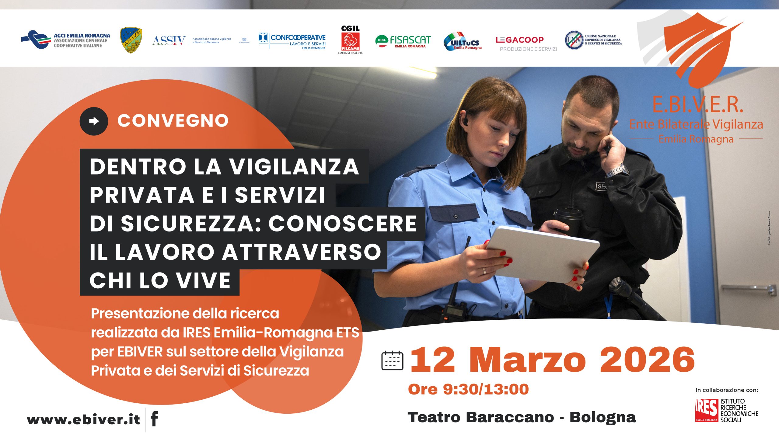 Il prossimo 12 marzo 2026, dalle ore 9:30 alle 13:00, presso il Teatro Baraccano di Bologna, si terrà il convegno dal titolo “Dentro la Vigilanza Privata e i Servizi di Sicurezza: conoscere il lavoro attraverso chi lo vive”, promosso da E.BI.V.E.R. – Ente Bilaterale Vigilanza Emilia-Romagna.
