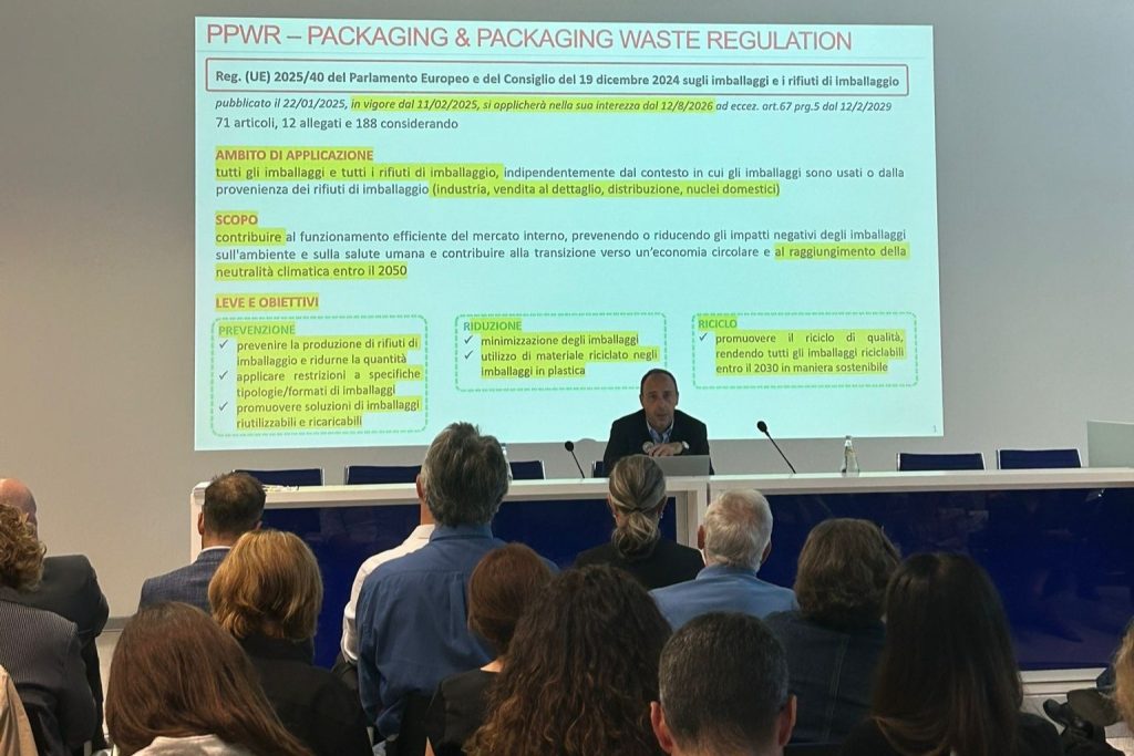 Al centro della mattinata di lavori è stato approfondito il nuovo Regolamento UE sugli imballaggi (PPWR), che entrerà in vigore con le prime disposizioni entro agosto 2026. La normativa introduce obiettivi progressivi di riduzione dei rifiuti, riuso e riciclo, fissando obblighi, limiti e divieti sui materiali utilizzati, ma allo stesso tempo apre importanti spazi di innovazione di prodotto e di sviluppo di modelli di filiera più circolari e sostenibili.